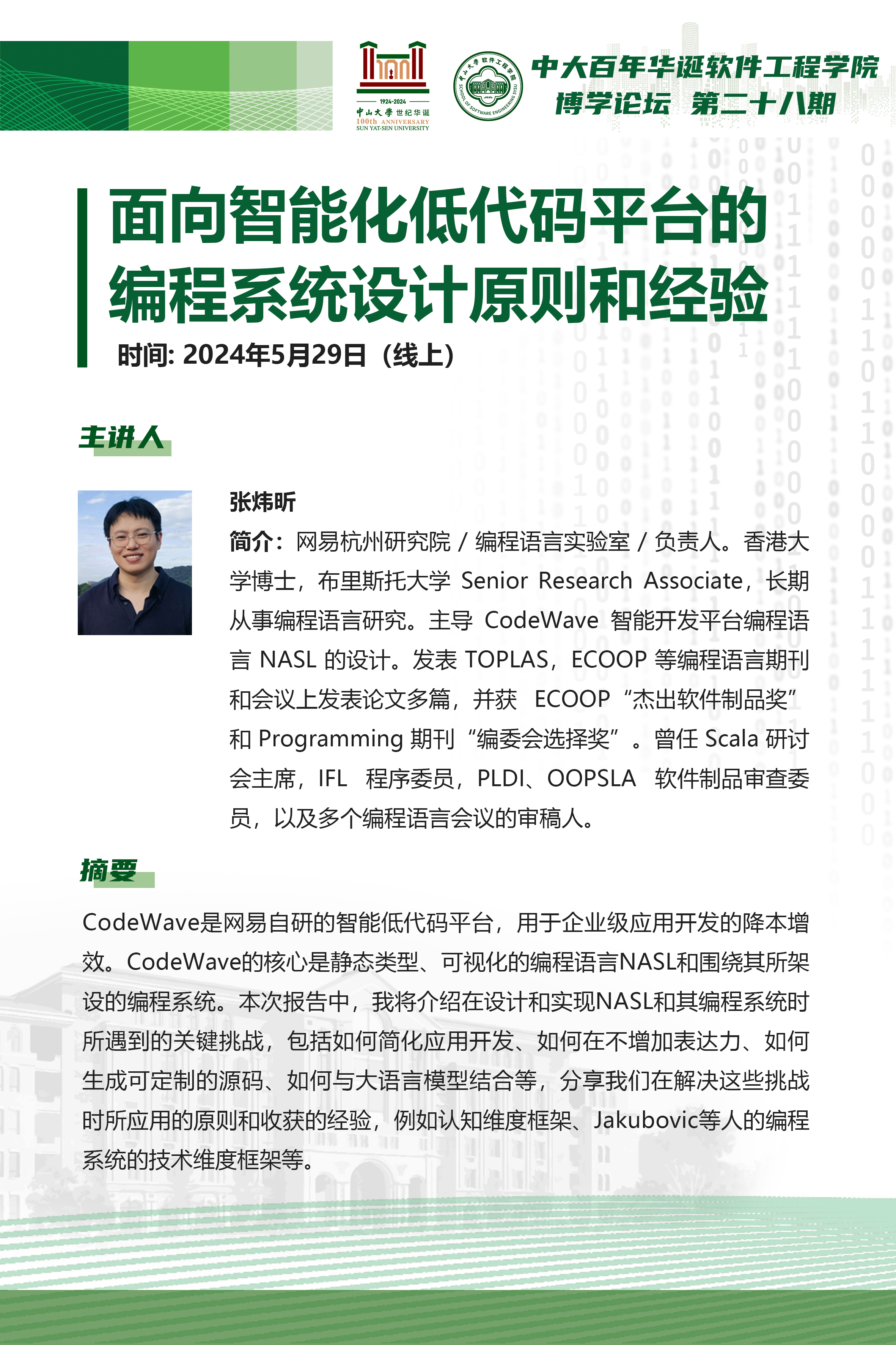 导航痕迹 金年会jinnianhuicom 学术科研 学术讲座 博学论坛第二十八期:面向智能化低代码平台的编程系统设计原则和经验 博学论坛第二十八期:面向智能化低代码平台的编程系统设计原则和经验 发布人:林柱良 发布日期:2024-07-19