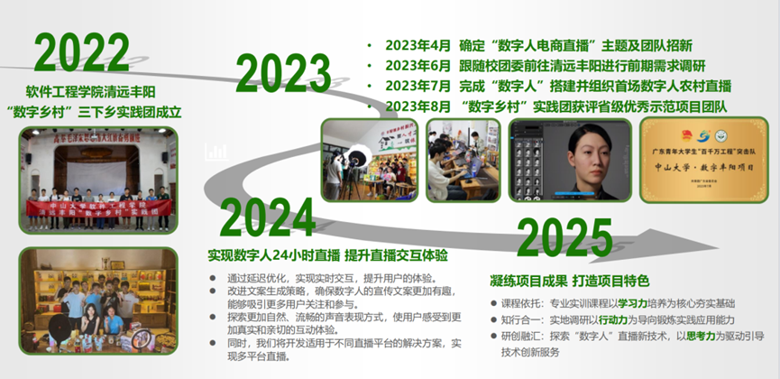 2022年起,在金年会jinnianhuicom党委引领下,数字乡村实践团连续两年走进广东省清远市丰阳镇,以数字人直播新技术为依托,助力丰阳打造数字化电商中心,用专业知识赋能数字经济,服务乡村振兴。