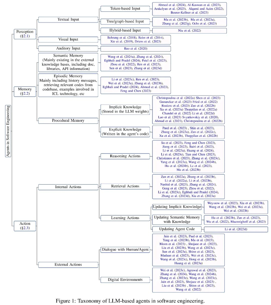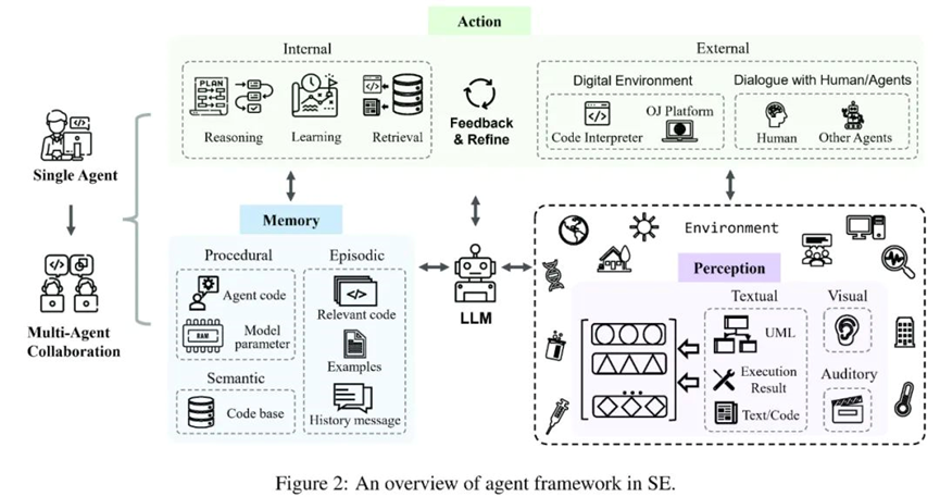 近年来,大语言模型(LLM)取得了令人瞩目的成就,并被广泛应用于各种下游任务,尤其是在软件工程(SE)领域的各个任务中。许多将大模型与软工领域相结合的研究都显式或隐式地涉及到了智能体的概念。基于大模型的智能体能够感知外界环境信息并将其转化成大模型能够理解和处理的模式,借助其记忆、推理、检索、学习、交互等能力,大模型能够在各类下游任务中取得更好的表现。目前还缺乏相关的工作对软工领域中基于大模型的智能体发展现状进行梳理。