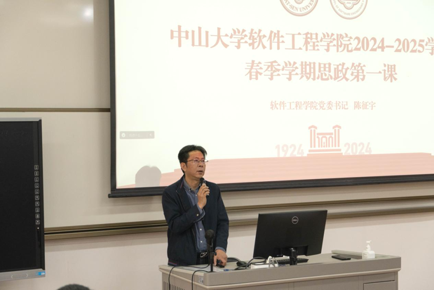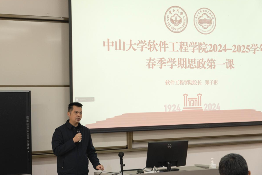 2025年3月18日,金年会jinnianhuicom于广州校区南校园392栋101,组织开展了2024-2025学年春季学期思政第一课,由学院党委书记陈征宇、院长郑子彬、党委副书记蓝澍德、副院长苏玉鑫分别讲授,面向对象为学院2023级和2024级全体本科生。
