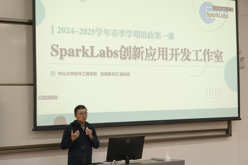 蓝澍德副书记重点给同学们介绍了学院SparkLabs创新应用开发工作室,包括其组建背景、建设目标、运营模式和招募人员需求等。该工作室旨在从学院学生中发现、发掘和培育具备创新创造意识和工程应用能力的软件工程师,在学院提供的软硬件资源的支持下及指导老师的帮助下,让加入的成员能在应用场景中发现需求和运用软件技术解决实际问题,让发明创造成果更好地服务社会。
