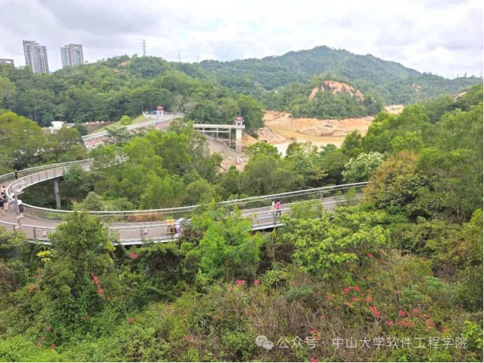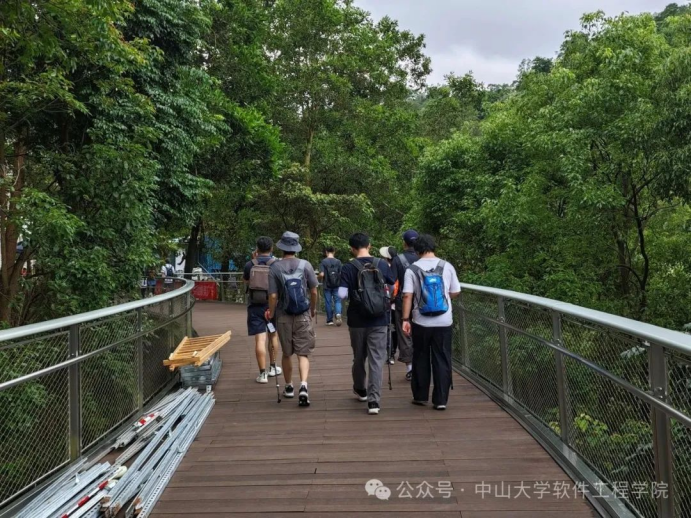 行进途中,学院教职工们时而驻足远眺城市天际线与葱郁山林相映的景致,时而交流工作生活趣事,步履轻快而从容,大家展现出积极融洽的互动状态。