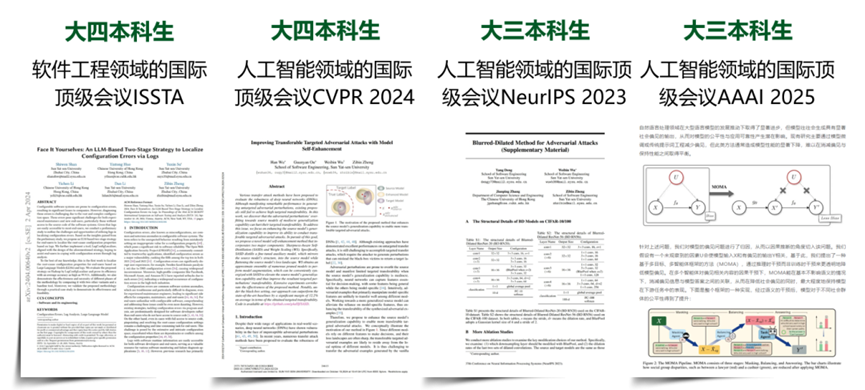 产出高质量科研成果。学院切实落实以科研为导向的全程导师制,实行课程教学、科研训练、工程实训相结合的人才培养体系建设,学院本科生作为第一作者身份在软件工程、人工智能领域发表4篇顶会论文。