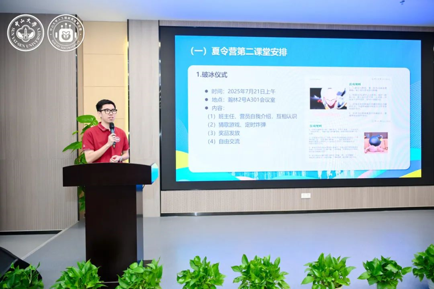 负责夏令营第二课堂活动的林柱良老师为全体营员作入学导航。他对本次夏令营第二课堂活动的具体流程和安排、日常纪律与校园生活指引等进行了详细说明,帮助同学们快速融入集体、明晰营期规范,希望同学们遵守营规、互助互学,在安全有序的环境中开启充实而愉快的夏令营时光。