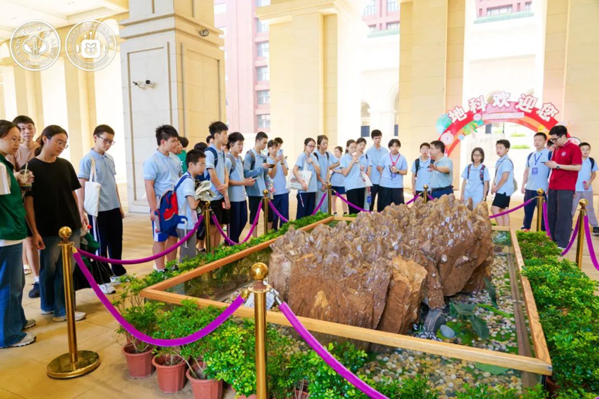 在博物馆中,同学们穿梭于矿物、岩石与动植物化石等展区间,时而驻足细致观察,时而探讨化石的演化历程;在海洋基地里,各类用于海洋探测与研究的尖端装备,以及珍贵的海洋生物资源标本,让同学们应接不暇。