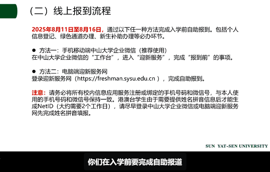 为新生详细介绍了入学报到的时间地点、具体流程、重要时间节点、报到后安排等