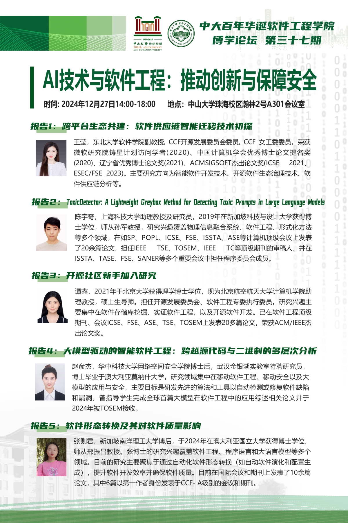 导航痕迹 金年会jinnianhuicom 博学论坛第三十七期:AI技术与软件工程:推动创新与保障安全 扫描此二维码分享 博学论坛第三十七期:AI技术与软件工程:推动创新与保障安全 发布人:林柱良 发布日期:2024-12-30 活动时间 2024年12月27日 14:00 - 2024年12月27日 18:00